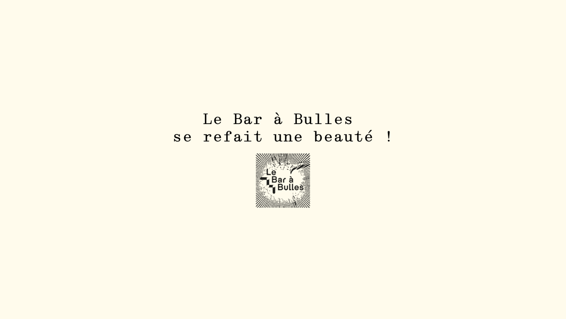 Après onze années de rencontres, de verres partagés sur nos terrasses lors des longues soirées d’été ou dans le confort de notre intérieur en hiver, de petites assiettes savourées et de brunchs passés à vos côtés, Le Bar à Bulles s’accorde une courte parenthèse afin de se refaire une beauté.