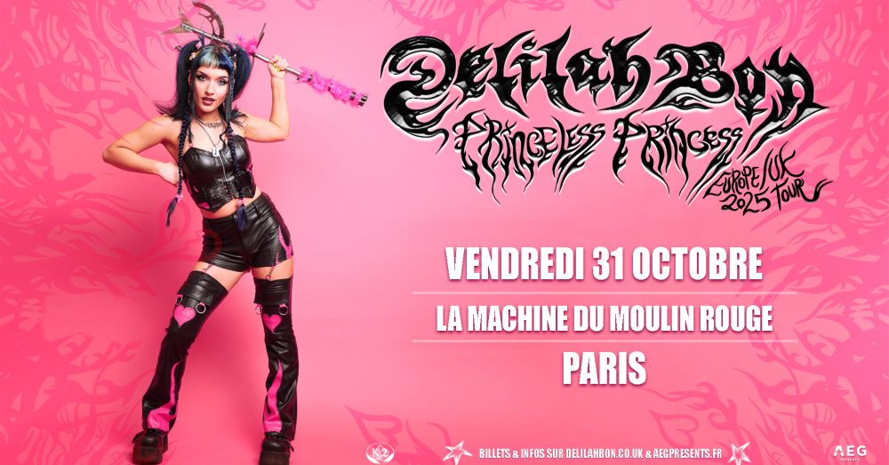 Sur scène, Delilah Bon est une force pleine de chaos, de catharsis et d’empowerment. Après une tournée à guichets fermés au Royaume-Uni et en Europe en 2024 et des performances remarquées à Glastonbury et au Download Festival, elle ne risque pas de se ralentir de sitôt. Delilah est plus qu’une simple musicienne, elle est à la tête d’un mouvement plus fort, plus audacieux et plus courageux que jamais. Son prochain EP, “Princeless Princess” prévu pour septembre 2025, brise les règles des contes de fées et les remplace par quelque chose de vrai : l’estime de soi, la rage et la rébellion.