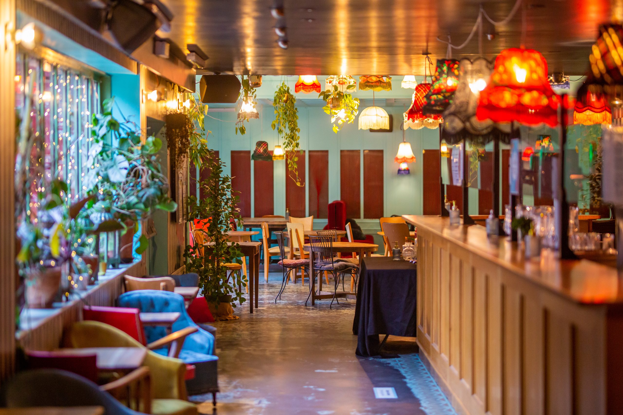 Salon coloré et végétal avec terrasse secrète sur les toits de la Cité Véron. Un écrin convivial et lumineux, parfait pour tous vos moments de partage.